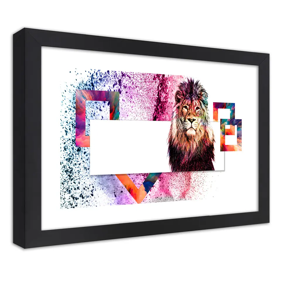 Poster in black frame, Lion with a colorful mane Size 60x40