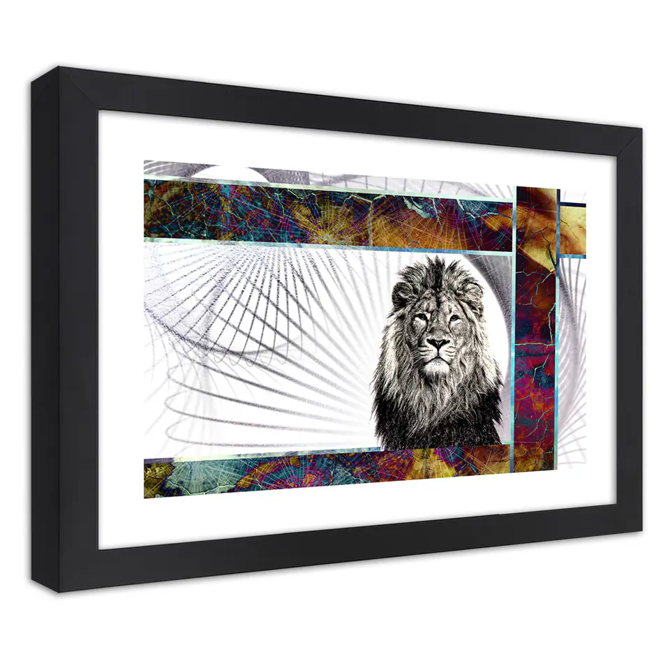 Poster in black frame, Majestic lion Size 100x70