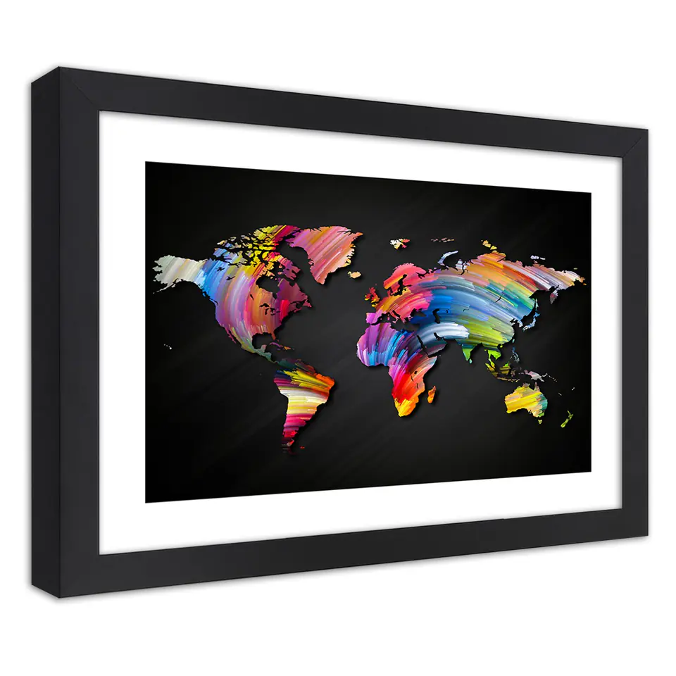 Poster in black frame, World map in different colors Size 90x60