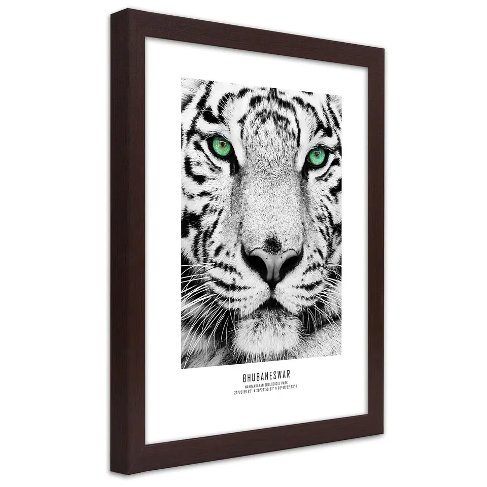 Poster in bronze frame, White Tiger Size 20x30