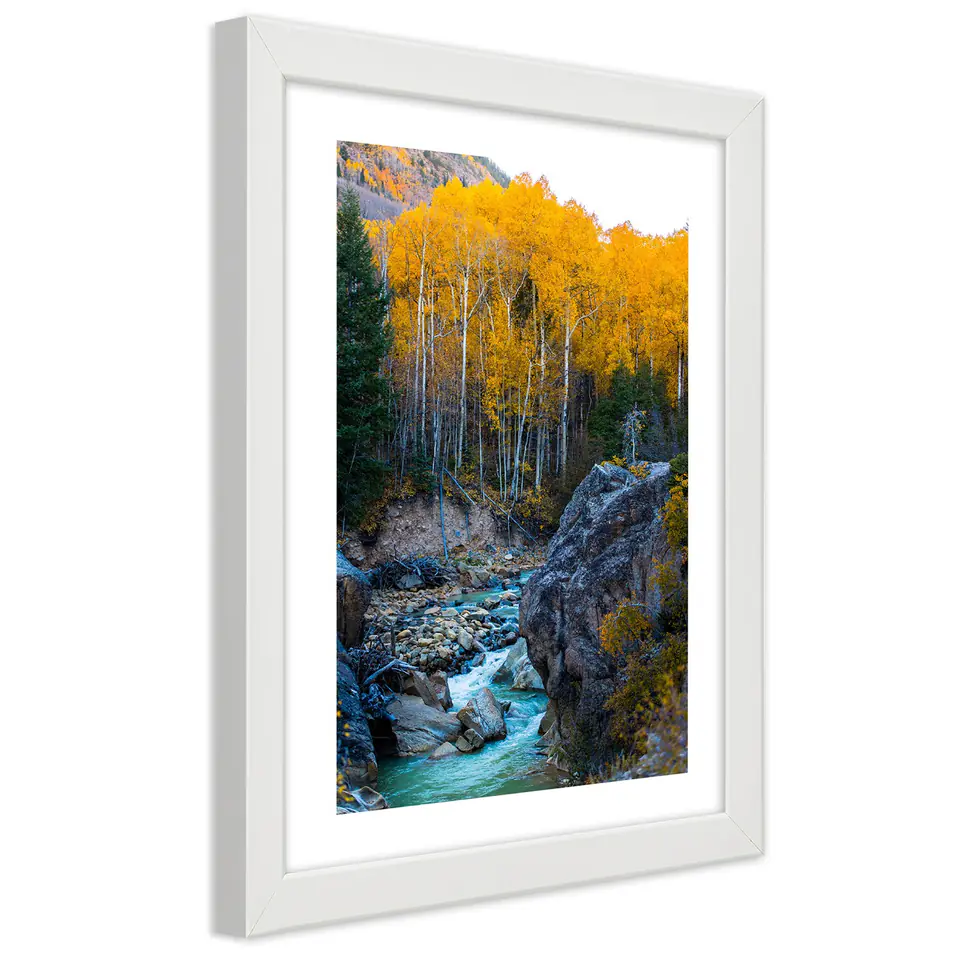 Poster in white frame, Stream in the forest Size 60x90