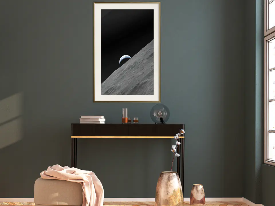 Poster - Planet in the shadow size 30x45, finish Gold frame with passe-partout