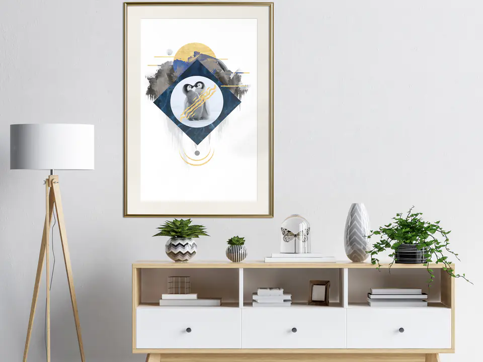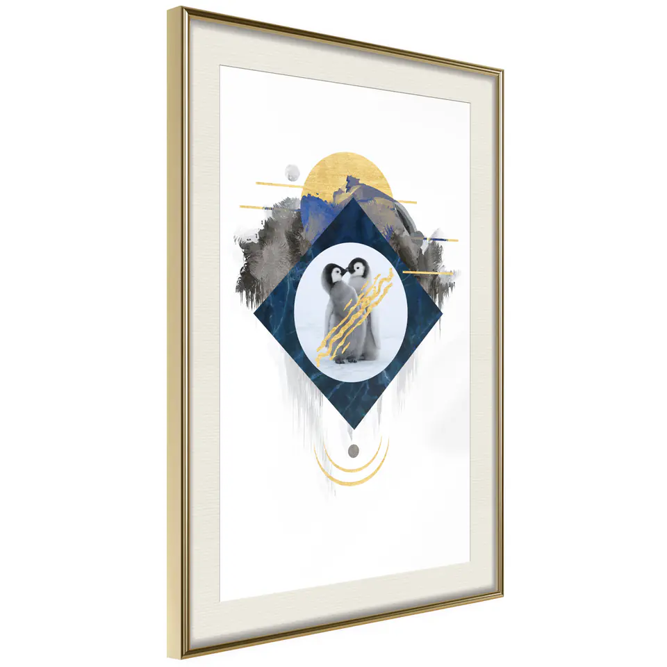 Poster - Small penguins size 20x30, finish Gold frame with passe-partout