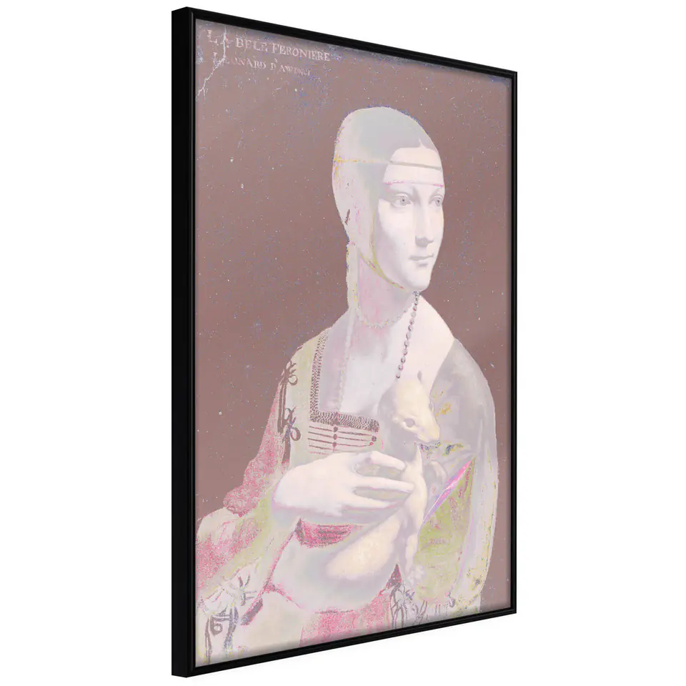 The poster is framed in a minimalist, light frame, exposing it against the background of the wall. The poster is protected with acrylic glass, a mounting hanger is attached to the back of the frame.