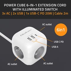 Power cube 6in1 3x AC 2x USB 1x USB C PD 20W