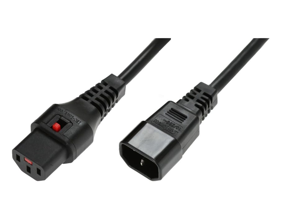 Power extension cable with IEC lock 3x1mm2 C14/C13 straight M/F 1m black IEC-PC1024
