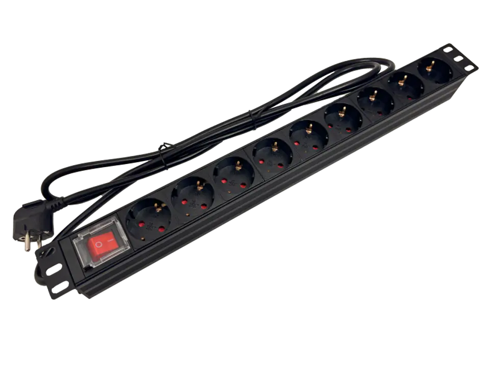 Power strip 19" 230V - 9 sockets type F - CEE 7/3 schuko), with LED switch, cable 1.8m CEE 7/7 ALANTE