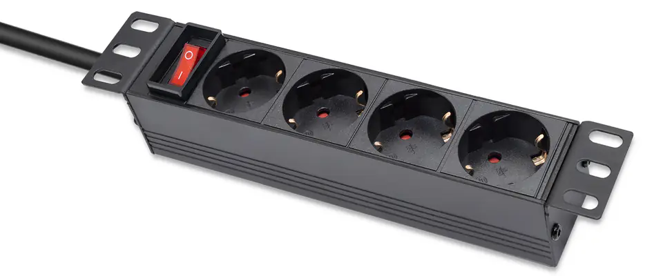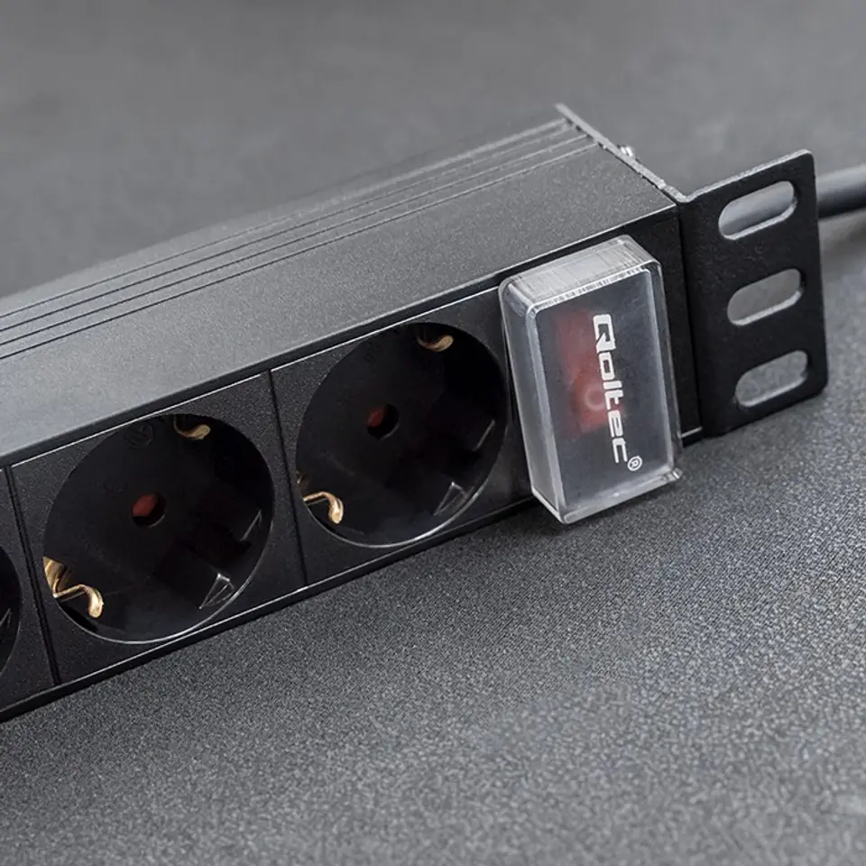 Stable and safe power supply for your devicesDo you run an IT company, perhaps you are involved in energy, industry or operate a small server room at home? Choosing the right equipment should always be very thoughtful, and the most important element in this case is a reliable power supply. The Qoltec PDU power strip is ideal for this. By purchasing our power strip, you ensure the right level of security for all the network devices in your server rack by protecting them from surges and power outages and increase energy efficiency.High quality and durabilityChoosing the right PDU strip, it is worth paying attention to functionality, the quality of the materials from which it is made, the mounting and the facilities offered, such as the illuminated switch, which allows you to quickly locate the power source. Our product fits perfectly into 1U 10" racks. The socket strip has 4 SCHUKO sockets. The housing is made of high-quality aluminium in black, while the sockets are made of durable ABS plastic. Thanks to which the socket strip is resistant to mechanical damage and intensive exploitation. Each PDU power strip has special brackets on both sides with which they can be mounted. The sockets are arranged at an angle of 35 degrees to the vertical surface of the server cabinet, making it easier to manage cabling and increasing the space in the server cabinet.Highest safety standardOur surge strips for RACK cabinets meet the highest standards and are CE and RoHS certified. They have also passed tests for:- electrical strength (Hypo test),- earth continuity,- insulation strength.