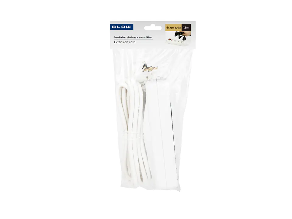 PR-670WSP mains extension cable with angled mains plug, 6 sockets with grounding and switch.