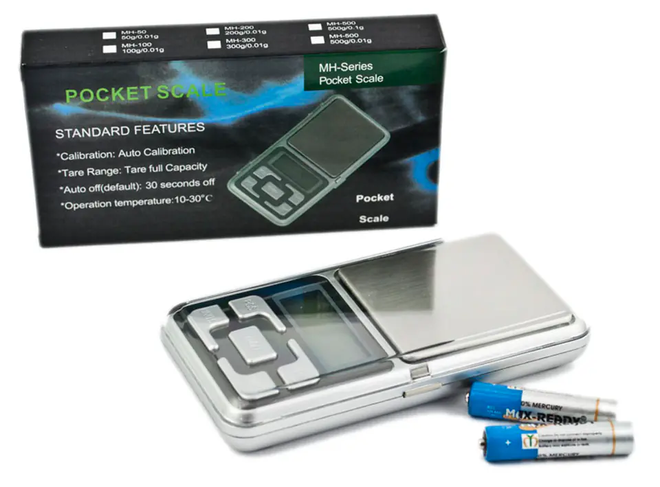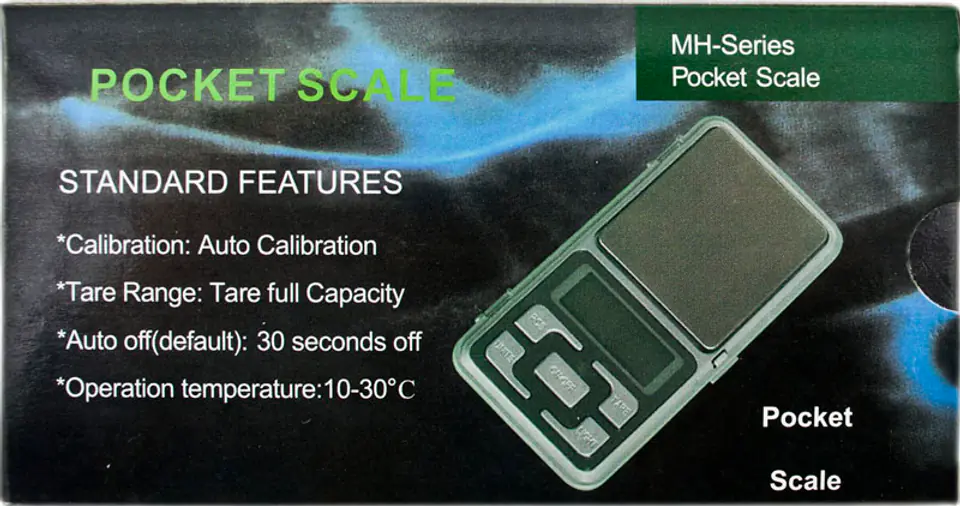 The scale has scales from 0.01g to 200g. Backlit display. . Powered by two AAA R3 batteries.