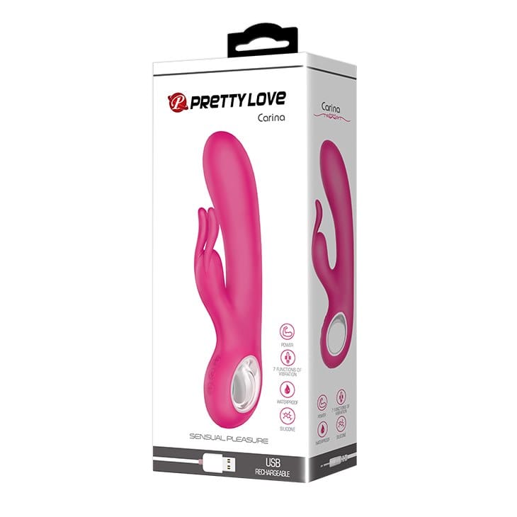Pretty Love Carina This is a stylish and powerful vibrator with great possibilities with a clitoral stimulator. Comfortable to use thanks to the internal hole that makes it easy to hold.