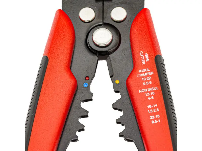 Cable insulation stripper is a practical tool that will allow you to quickly and precisely remove insulation from flat and round wires. To remove the insulation, insert the cable into the double jaws and then tighten the handle.