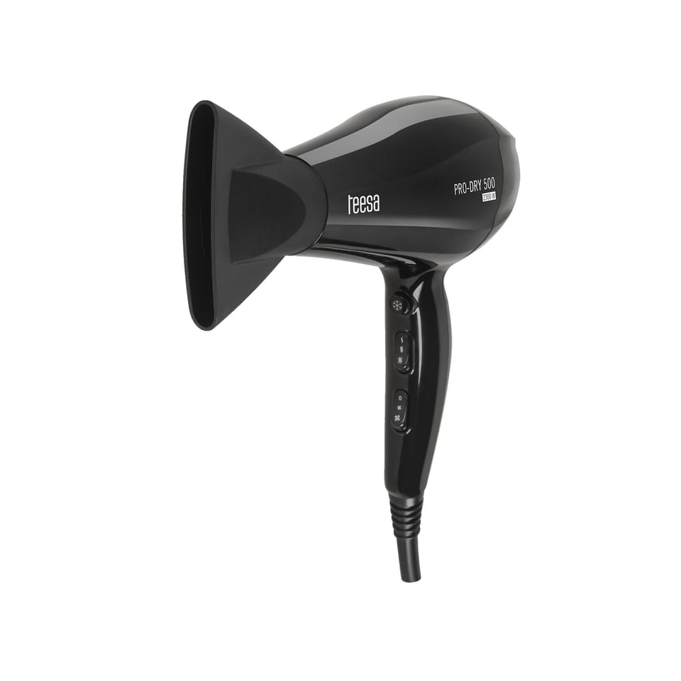 The Teesa PRO-DRY dryer with AC motor with a power of up to 2300 W guarantees fast and effective drying of even the most unruly strands. Thanks to the ionization function , the hair does not electrify, is more smoothed and looks healthy. 3 temperature levels and 2 supply air speeds give the possibility of greater control and thus protection of hair during drying. Moreover, blowing cold air will make it easier to finish the hairstyle and give it its final shape.