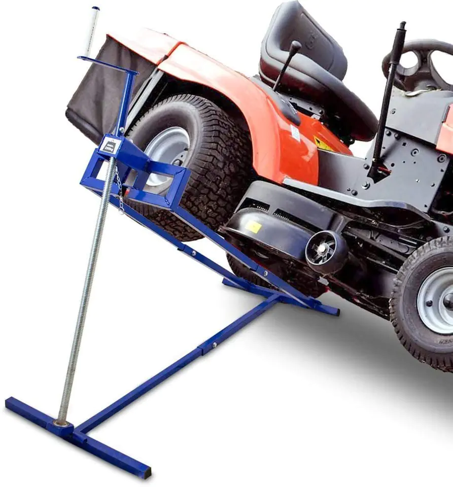 Professional tractor lifting jack - lawn mower and quad bike for repair or cleaning after mowing is finished, unscrewing knives for replacement or sharpening. The device replaces the channel, this is a mandatory item for every lawn mower owner.