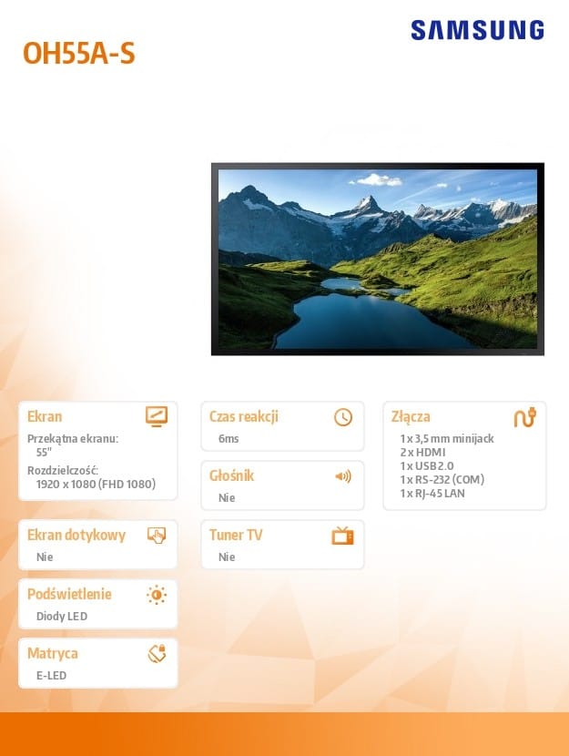 When it comes to providing concise communication to customers, the Samsung OH55A-S has a bright screen for clear visibility in a variety of weather conditions. Also designed for businesses, the OH55A-S is equipped with robust hardware for longevity and flexibility.