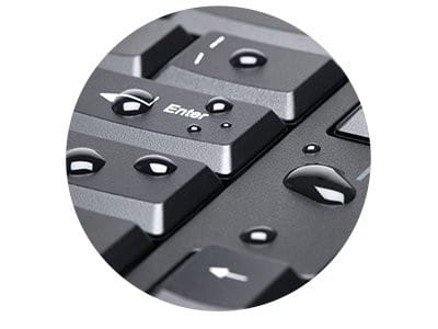 - The spill-resistant keyboard is easy and quick to clean. Meets the MIL-STD-810H Method 504.3 Contamination by Fluids test for resistance to deterioration after exposure to cleaning and disinfecting agents such as alcohol and bleach for 24 hours.