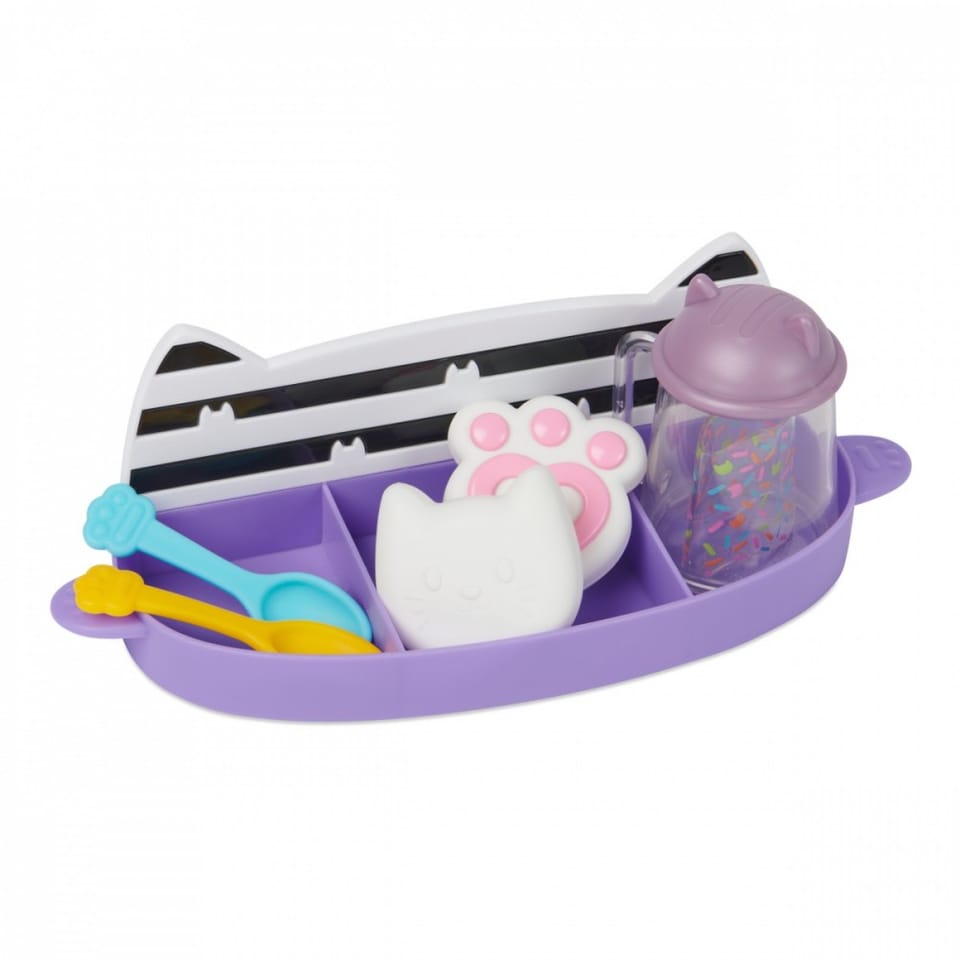 Enjoy endless pretend play fun with the Gabbys Dollhouse, Sprinkle Party Sweet Treat Set! This amazing 15-piece playset consists of super-cute kitty mugs, with kitty shaped teaspoons and saucers, a serving tray and a sprinkle shaker! When its time for a party, fill your cups with pretend hot cocoa, drop in the marshmallows and fruit toppers, then top it off with the rotatable whip cream toppers that you can turn, to reveal some yummy sprinkles! This one of a kind play food set features authentic design and styling, so it looks just like the cocoa party set in the Gabbys Dollhouse series would be the perfect addition to any kids kitchen playset. For even more ways to play, look for the Bakey with Cakey Oven and pair it with the Sprinkle Party Sweet Treat Set for more amazing parties and to build out your pretend play dollhouse world even more! For one last surprise, scan the QR code found on the Sweet Treat Sets packaging to access the free Gabbys Dollhouse App (available on iOS and Android). Gabbys Dollhouse stuffed animals, dolls, toy figures and playsets are the perfect toys for girls and boys that love using their imagination to create their own dollhouse world, so prepare for endless pretend play adventures with the Gabbys Dollhouse, Sprinkle Party Sweet Treat Set!