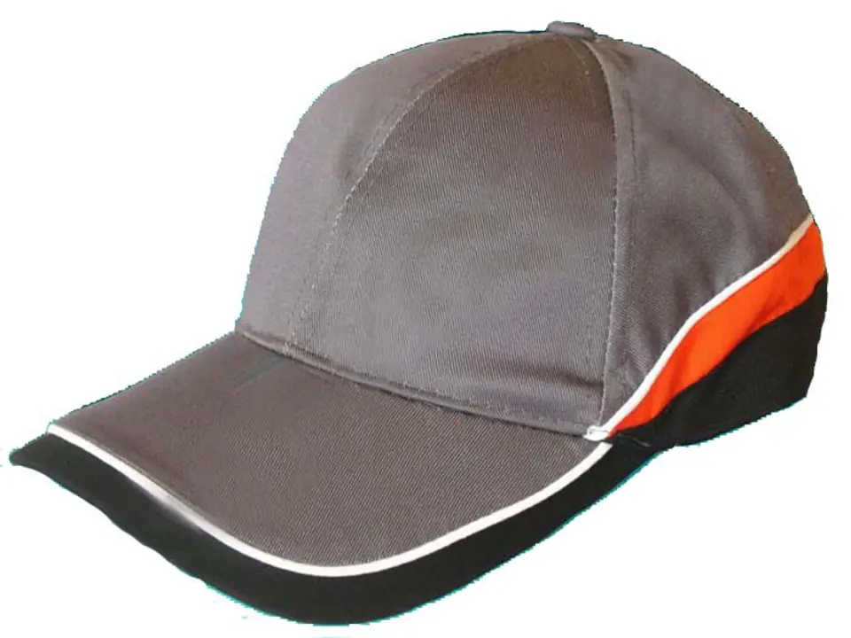 Baseball cap with head circumference adjustment fastened with Velcro, stiffened forehead.