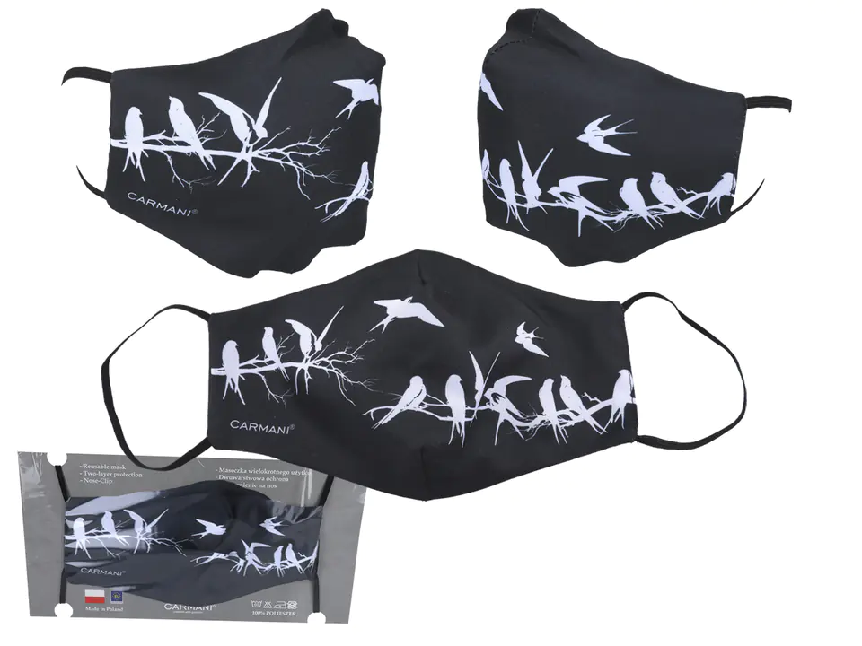 Protective mask - black, Birds with set CARMANI