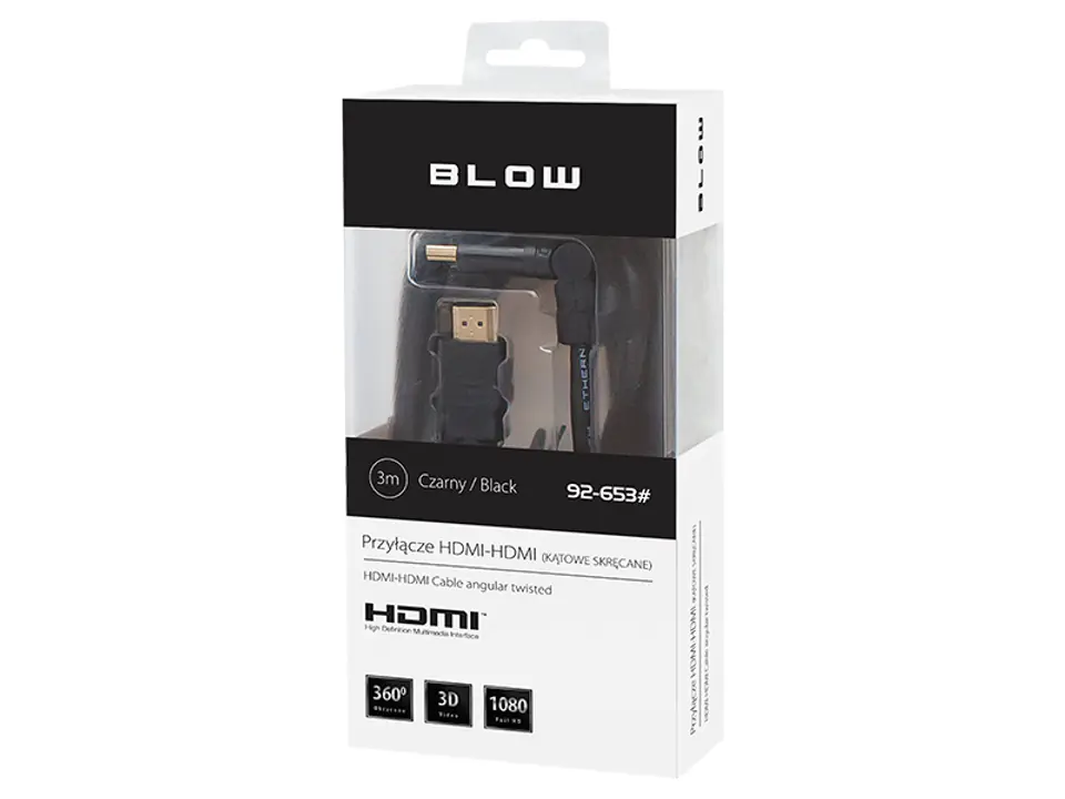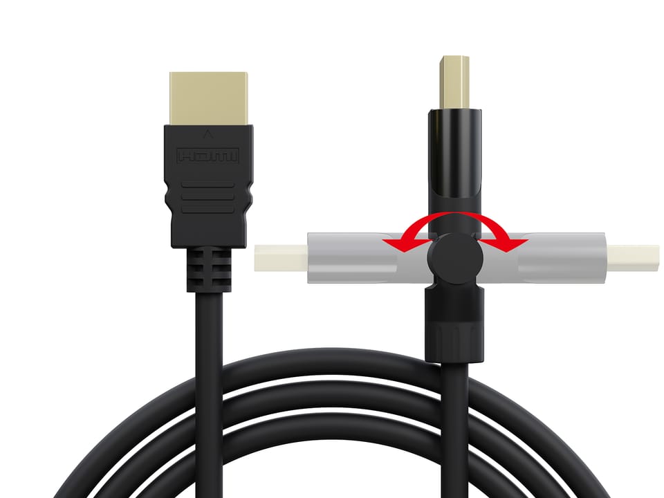 HDMI-TO-HDMI cable with one twisted connector and fully rotatable tip. This will allow you to connect devices even in hard-to-reach places without having to unnecessarily bend the cable.
