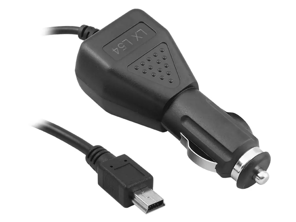 The cable integrated with the charger is terminated with a mini USB plug. This interface is often found in mobile devices such as car navigation or cameras. The LED built into the charger indicates the operation of the device after connection.