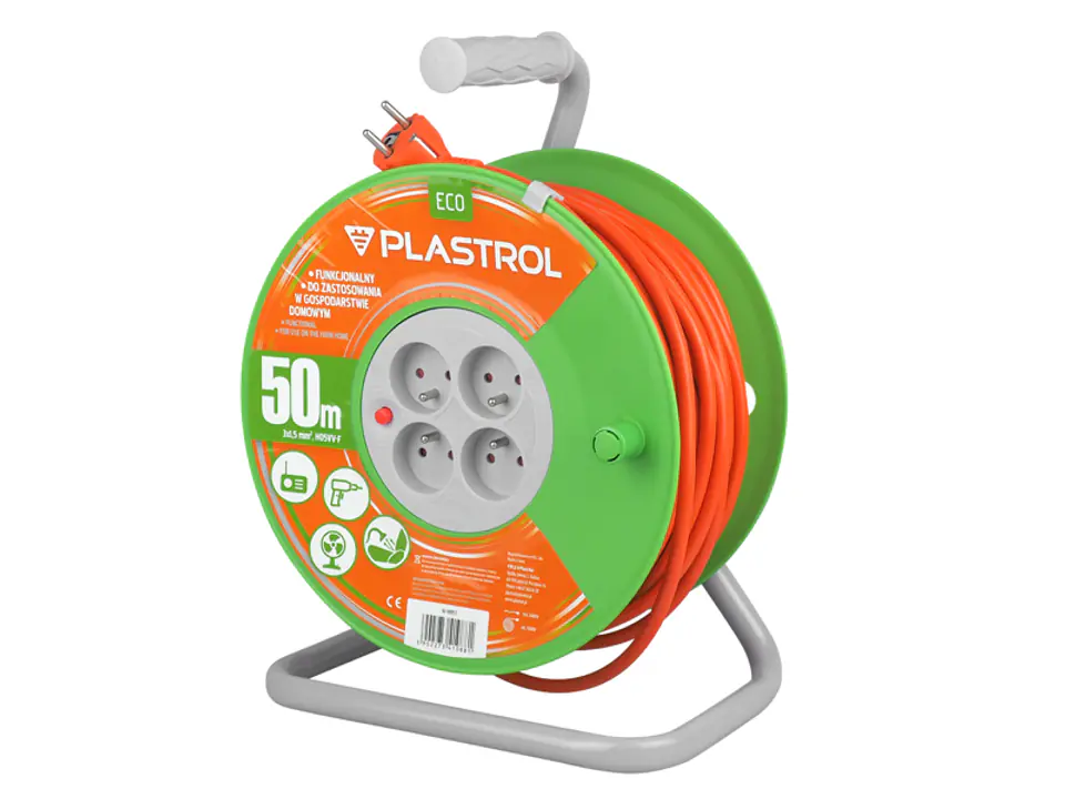 PS Drum extension cable ECO LINE, 4x2p+Z, 16A,3680W, cable 3x1,5mm H05VV-F, 50m, orange. (1LM)