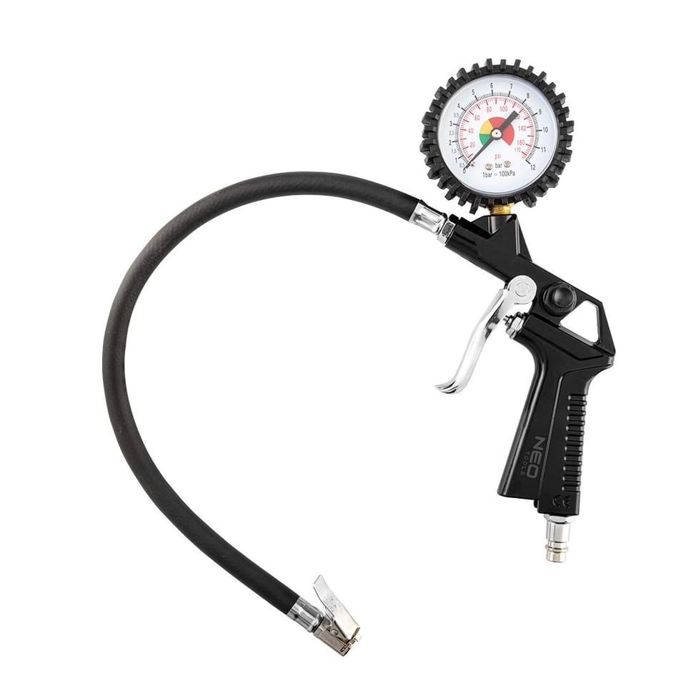 NEO pumping gun with 63 mm diameter pressure gauge. Maximum working pressure 12 bar. It has a practical hook for hanging and a hose. It can be operated with one hand (allow and drain). The CE certificate confirms the high quality of the tool.
