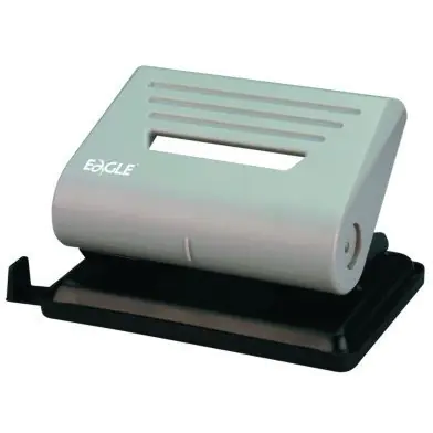 The punches have a plastic, durable arm and a metal base and plastic finishes. Equipped with a center indicator and a format bar. Bore diameter 5 mm, hole spacing 80 mm.