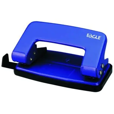 Metal punch, with plastic finishes. Equipped with a center of the page indicator and a format lsitwa. Bore diameter 5 mm, hole spacing 80 mm. Punch up to 8 sheets