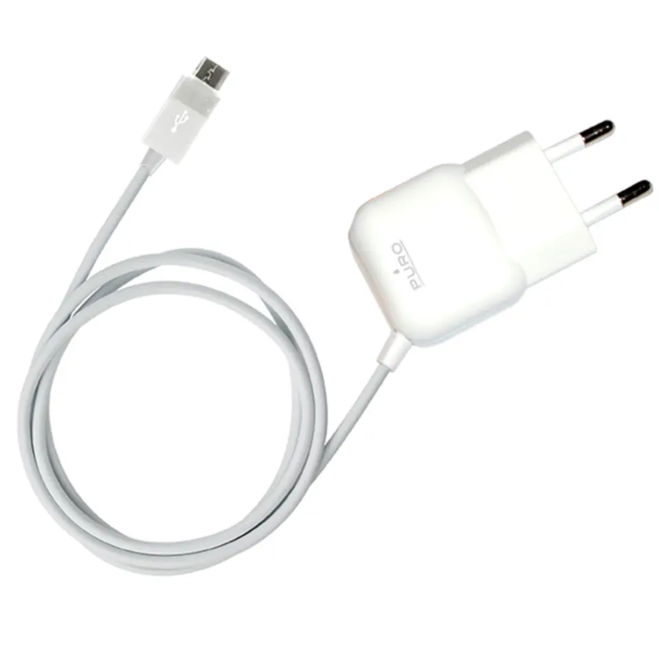 PURO Mini Travel Charger - Portable wall charger with Micro USB cable white