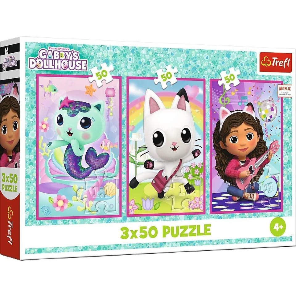 Puzzle 3x50 elementów Gabby i kotki Gabi