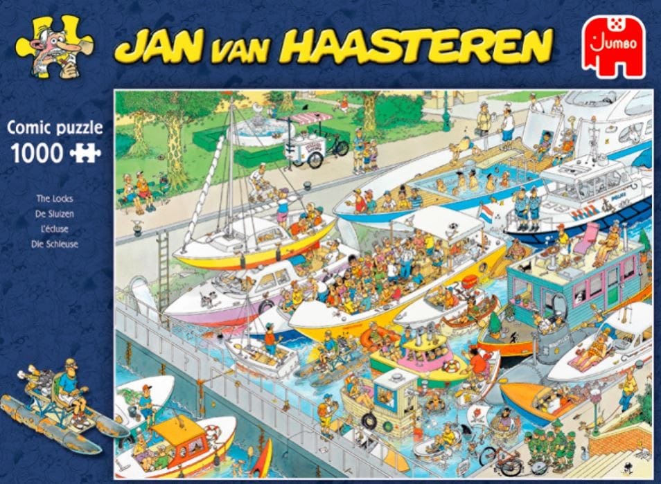 Jan van Haasteren puzzles are much more than puzzles, they are an adventure series with well-known characters playing leading roles in an endless design full of absurd details. Discover the crazy adventures of the Jan van Haasteren family! The puzzles are made of recycled cardboard from Europe. We use the thinnest knife available to cut the cardboard into puzzle pieces. The puzzle has an almost smooth appearance when completed. Enjoy this puzzle by Jan van Haasteren!