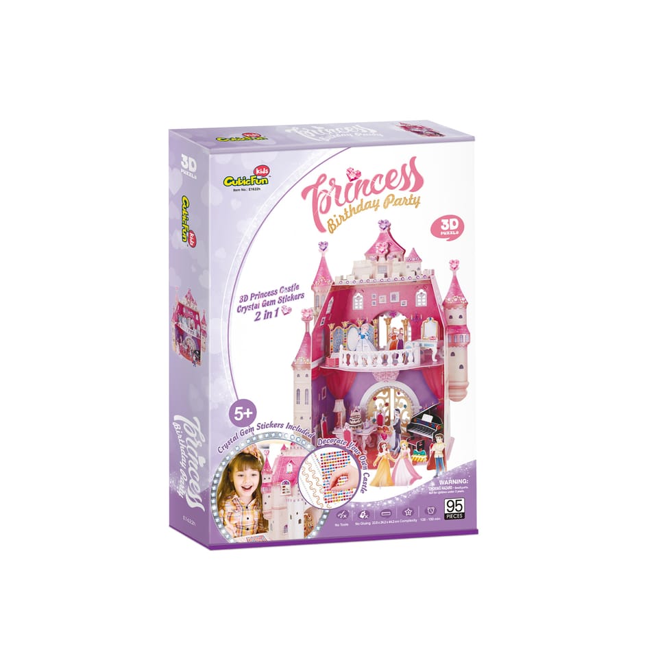 PUZZLE 3D PRINCESS BIRTHDAY PARTY is exciting fun for children and adults. The package contains 95 pieces made of a special foam-like material. The puzzles are numbered, notched and placed on sheets. Just squeeze the element from the sheet without using force and assemble it in accordance with the attached instructions, without using glue or special tools.