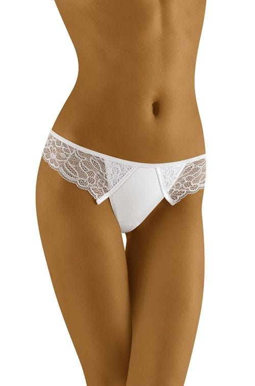 Sexy thong with a bow over the buttocks and a lace "apron" around the hips. The cut line is lowered, makes the whole look very sensual. Composition: 87% polyamide, 13% elastane.