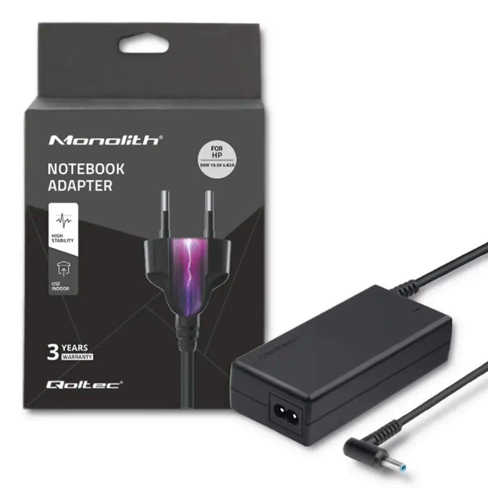 Modern, high-efficiency, Qoltec AC adapter dedicated for HP Compaq laptop. You can enjoy it at home and at work, as a primary or backup power supply. Equipped with advanced technologies (security) overvoltage, overload, short circuit and overheating, it is safe to use. It is characterized by low energy consumption and high efficiency. Includes power cord and velcro where you can adjust the length of the Qoltec adapter cable.