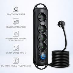 In our assortment, you can find surge protectors in a few variants. They differ in terms of amounts of sockets and cable length so you will find the right one for sure. A backlit footswitch is a practical element. When it lights up you can be sure that your devices will get a dose of energy. This is a very comfortable solution you dont have to bend down just put your surge protector on the floor and turn it on or off comfortably.