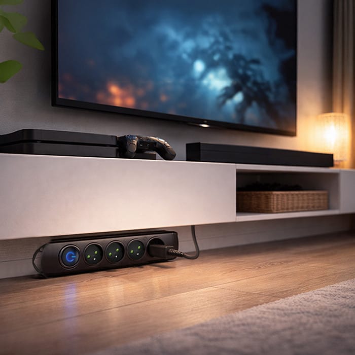 Our surge protector will fit perfectly with your devices. It is possible thanks to the classy black color. Design is based on the newest trends, it combines elegance and easy use. Gain more space wrap the cable around the surge protector, put it on the floor or mount it on furniture and enjoy the freedom of movement.