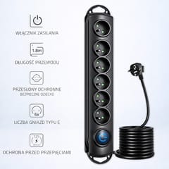 Qoltec 50111 surge protector 6 AC outlet s) 230 V 1.8 m Blac