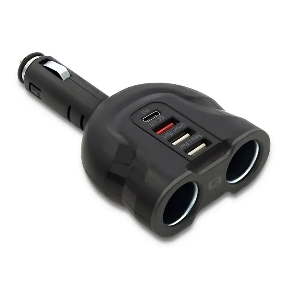 The Qoltec car cigarette lighter splitter is an advanced product made of high-quality materials. It combines modernity, stylish design and functionality. It has two cigarette lighter sockets, two USB Smart, one USB Qualcomm Quick Charge 3.0 and one USB Power Delivery which increases the comfort of usage by allowing quick charging several devices such as a tablet, smartphone, navigation and others. At the same time you still have an opportunity to use the cigarette lighter. An additional advantage is an integrated cable that lets passengers sitting in the back sits connect their devices.