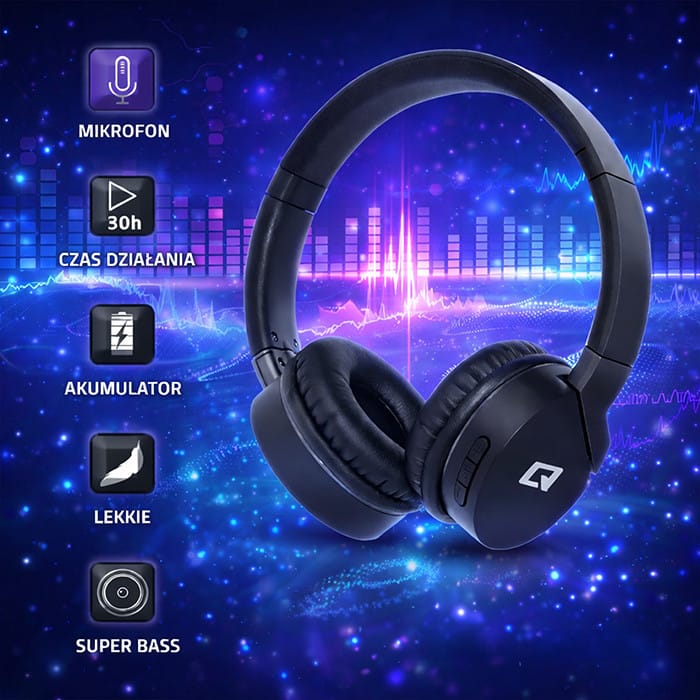 Qoltec 50825 headphones/headset Wired & Wireless Head-band Calls/Music Micro-USB Bluetooth Black, Grey