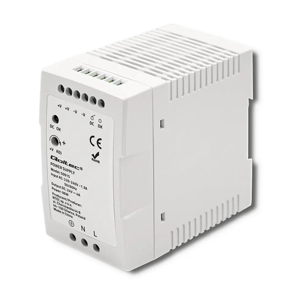 Qoltec 50915 DIN rail power supply | 96W | 24V | 4A | White | Slim