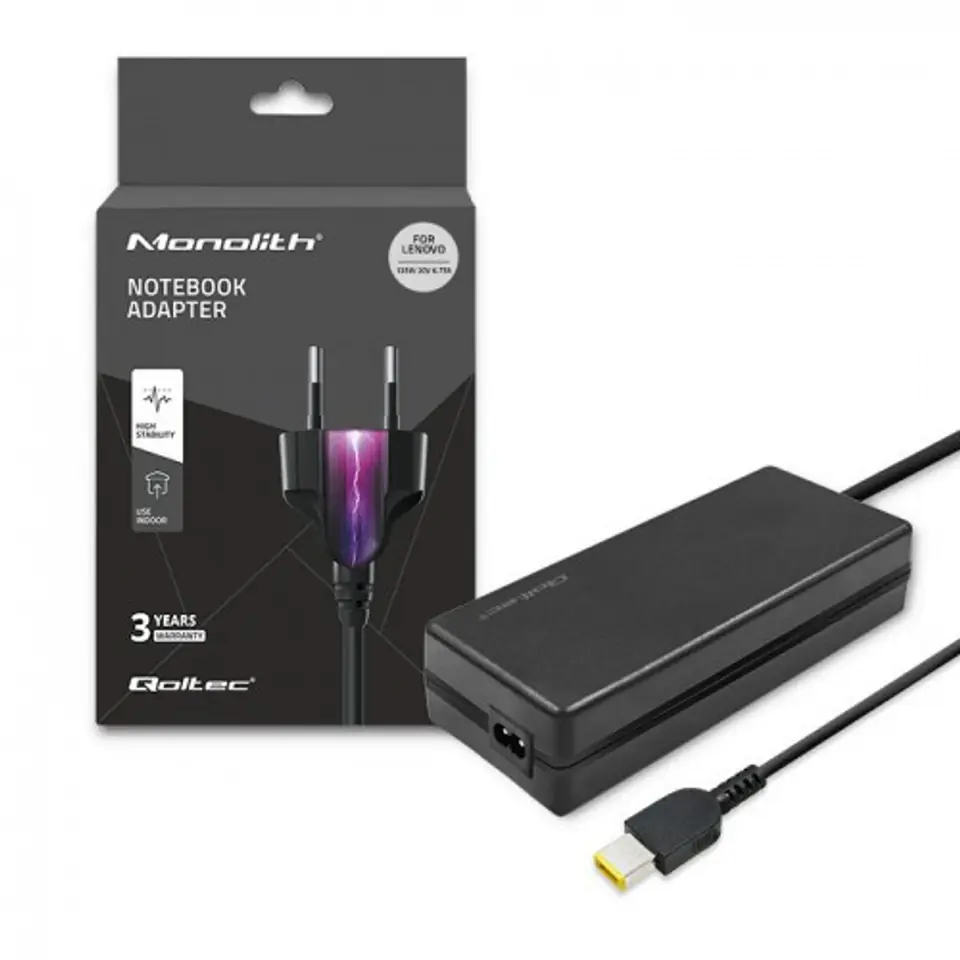 A solution dedicated to youWhen it comes to power supplies, reliability is crucial. Select a Qoltec power adapter 135W dedicated to IBM/Lenovo laptops. The power supply has a rectangular slim tip plug with a pin. It is made of the highest quality materials, and the technologies used in it allow for low energy consumption and high efficiency. Package contents power supply with velcro to organize the cable, thanks to which you can adjust the length of the cable.Safe power supply in a universal versionOur power adapter is equipped with protections:
