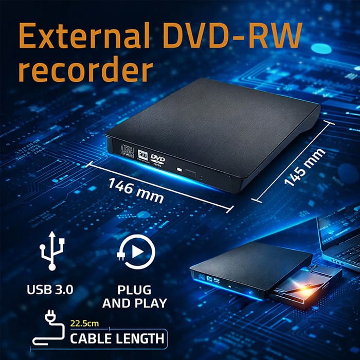 Discover new possibilitiesElectronic devices, especially PCs and laptops, have revolutionized our lives. We use them every day at work and home. You watch movies, family photos, listen to music with friends, or prepare a presentation for school or work. We store many files on CD / DVD media, but modern computers are not always equipped with a drive that allows you to read or record files, so the Qoltec brand recorder will be the perfect solution, thanks to which you can install a disk drive for reading or recording files.Choose quality and safetyThe housing of the Qoltec DVD-RW recorder is made of reliable and durable plastic. It is durable, light, and perfectly protects the drive against damage. Minimalistic and elegant design, which gives a thin casing provides excellent aesthetics and comfort of use, and the well-thought-out design has a suitable place to store the USB cable. The practical solution eliminates the loss of the cable, and at the same time makes it easier to store and carry the device. Cushioning is provided by additional rubber feet that stabilize the housing against movement.Innovative technology in your homeYou don't need to install drivers, just plug into a USB port, and use thanks to the simplicity of the Plug & Play function. The drive is compatible with all major operating systems, including Windows 10, Windows 8.1, Windows 8, Windows 7, Vista, XP, Linux, and MAC OS. The Qoltec DVD-RW burner is built based on high-class, alternative components that will automatically detect the type of interface and adapt to it. It also has an impact on long-term operation and cooperation with older generation devices.