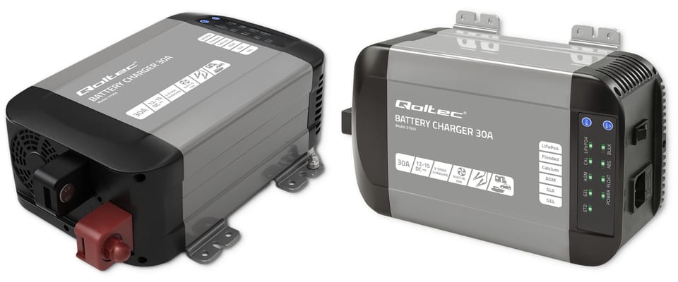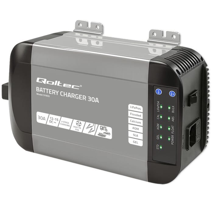 Qoltec 51955 Smart Monolith charger for LiFePO4 AGM GEL SLA batteries | 30A | 12V