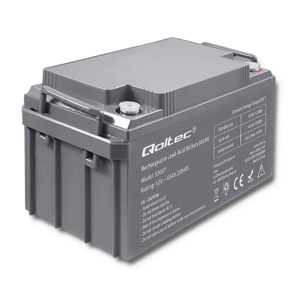 Qoltec 53037 AGM battery | 12V | 65Ah | max 780A