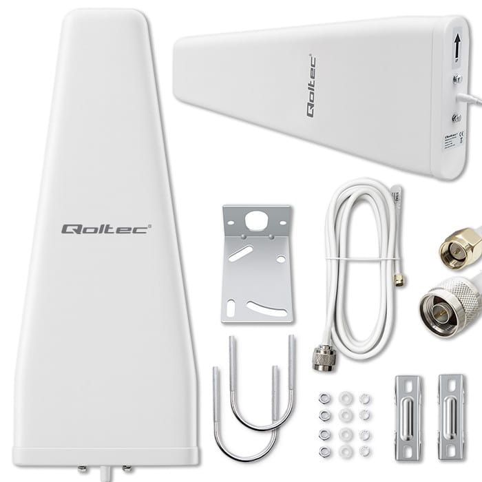 Reach the full potential of 4G networksMany times we struggle with interference that prevents us from surfing the web freely, so we have the perfect solution for you. This is the 4G LTE DUAL antenna from Qoltec, with a gain of 14dBi, which will clearly improve the quality of data transfer to your devices and can help you maintain a stable connection even in areas with difficult signal conditions. With a frequency range of 600-2700 MHz, the antenna is compatible with different bands used by different 4G LTE networks.Excellent performance and weather resistanceThe 4G LTE antenna is designed to improve the quality of Internet at home, in the office and in any other room with internet access, which can translate into a more stable internet connection, faster data transfer speeds and better overall network performance. The IP67 rating, combined with the ability to withstand various weather conditions, can ensure connection stability even in harsh weather conditions.Our solution offers:- support for the 4G LTE standard - providing signal speeds of up to 600 Mbps,- operates in the 600-2700 MHz,- N connector - allows for direct connection of the antenna to access points, routers or network cards having a compatible connector,- modern design - thanks to the use of high-class materials and attention to detail.