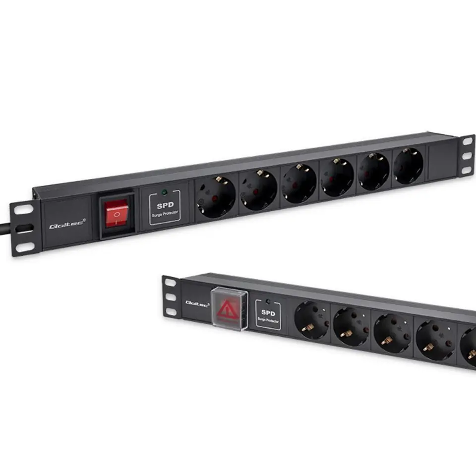 Qoltec Aluminum PDU for 19'' RACK | 1U | 16A | 6xSCHUKO | 1.8m