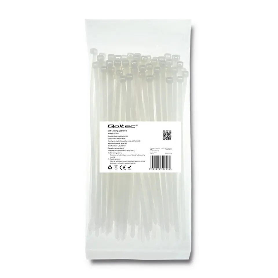 Qoltec Cable tie | 4.8*200mm | UV Nylon | White 0NC