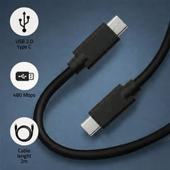 Qoltec Cable USB 2.0 Type-C male | USB 2.0 Type C male | 2m | Black 0NC