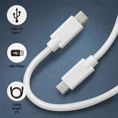 Qoltec Cable USB 2.0 Type-C male | USB 2.0 Type C male | 2m | White (0NC)
